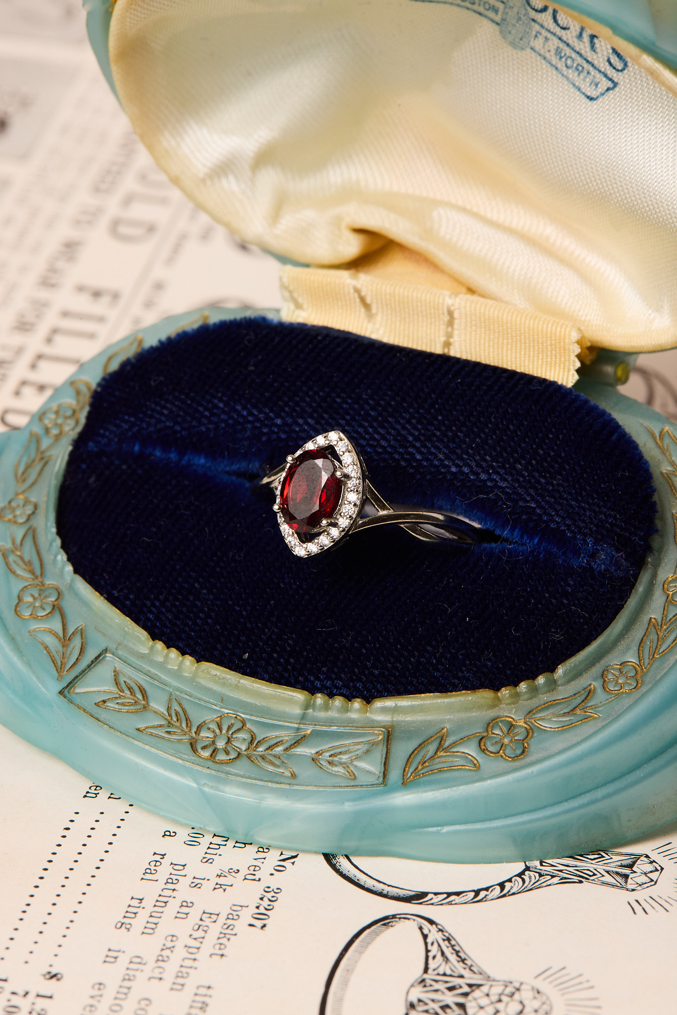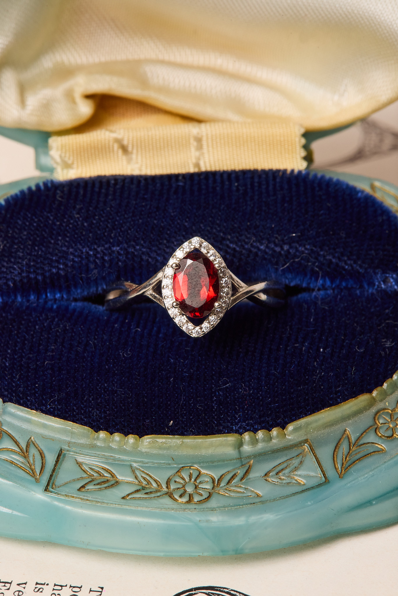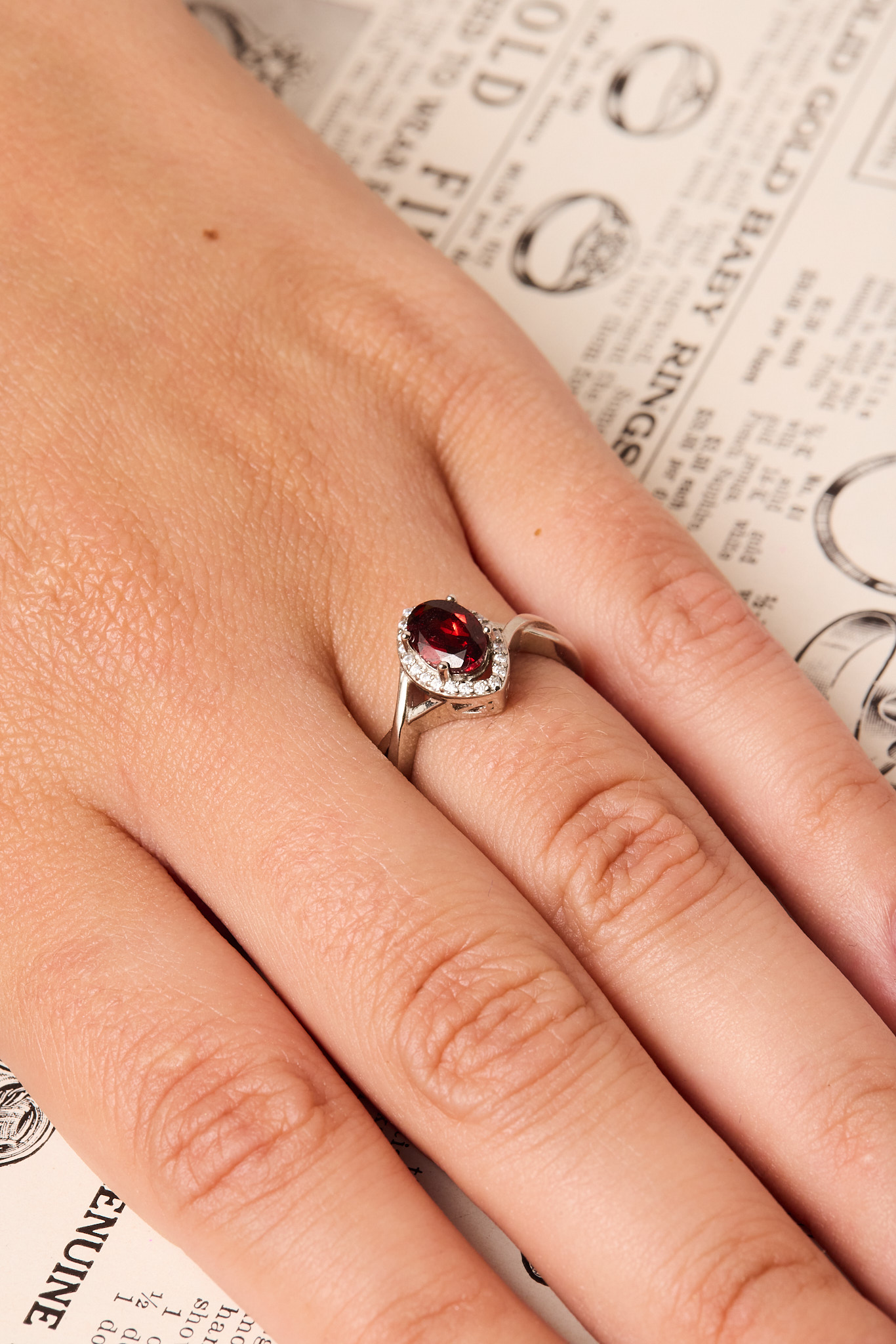Anillo hecho mano en plata con granate natural y circonitas. Talla 14.