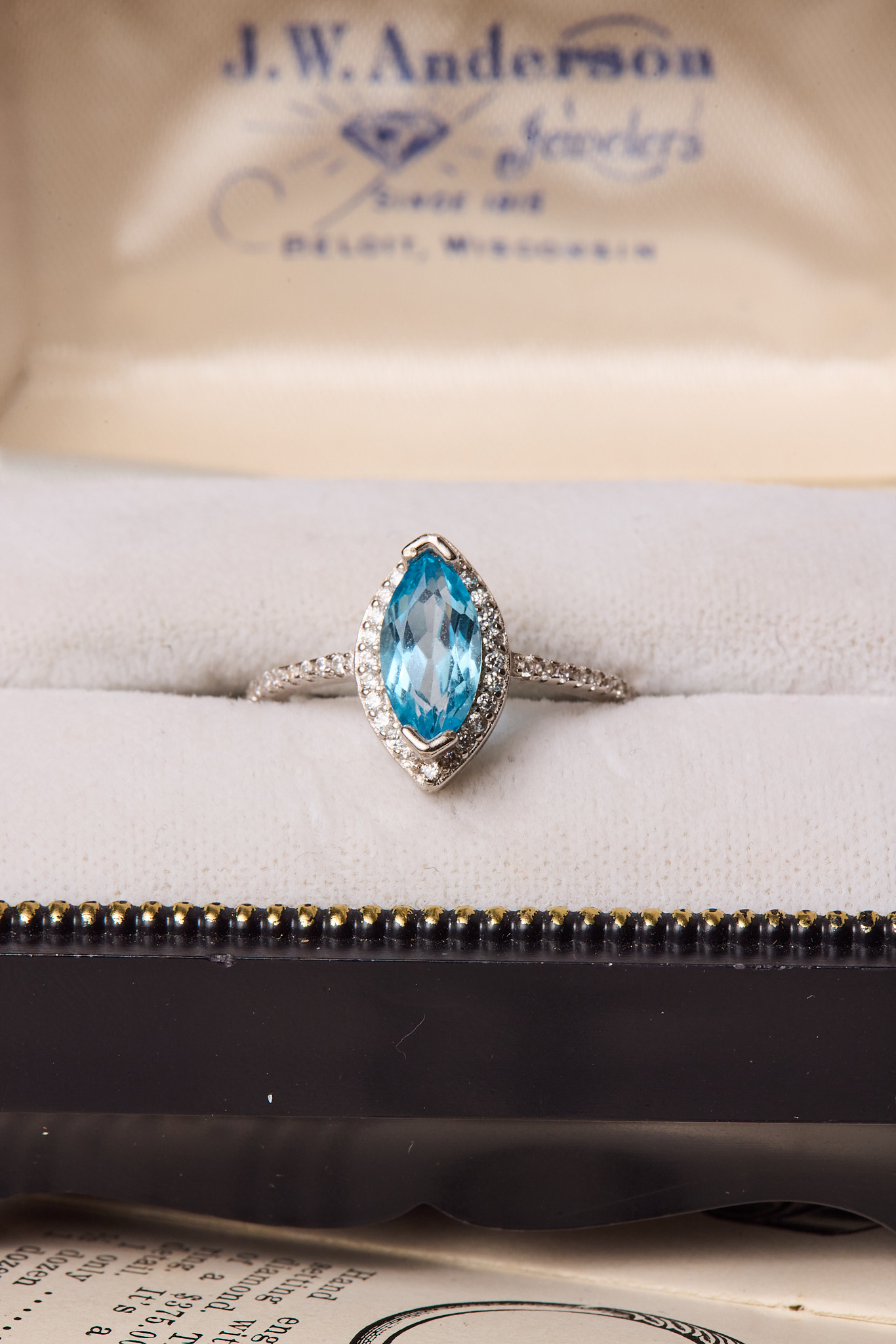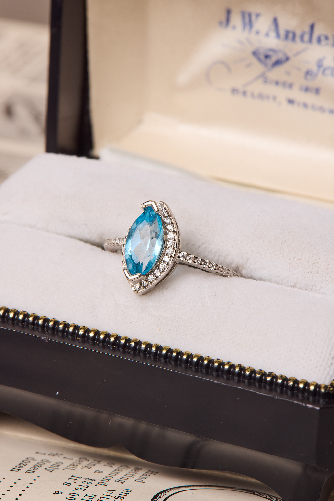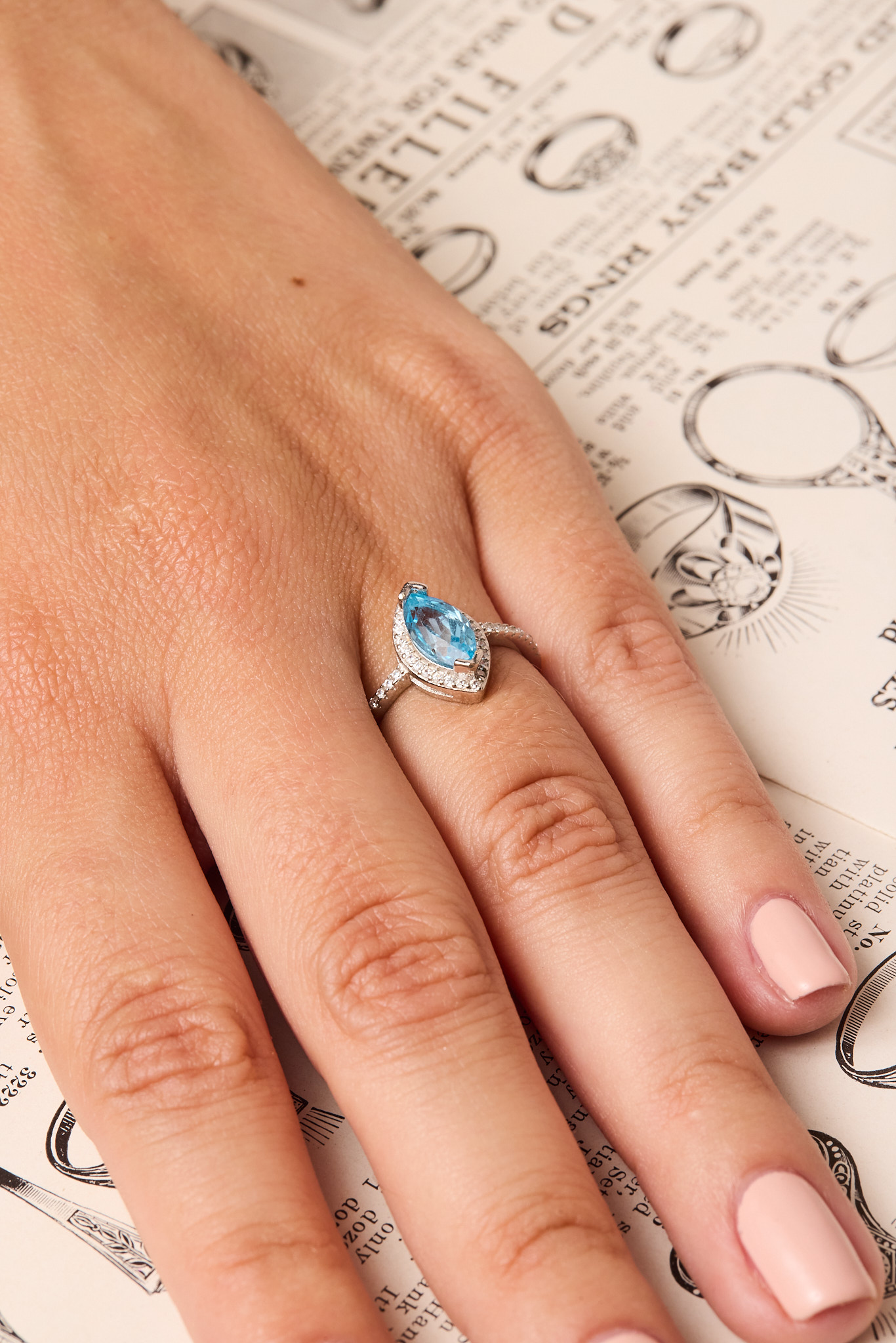 Anillo hecho mano en plata con topacio natural de 5x10mm. Talla 11,5.